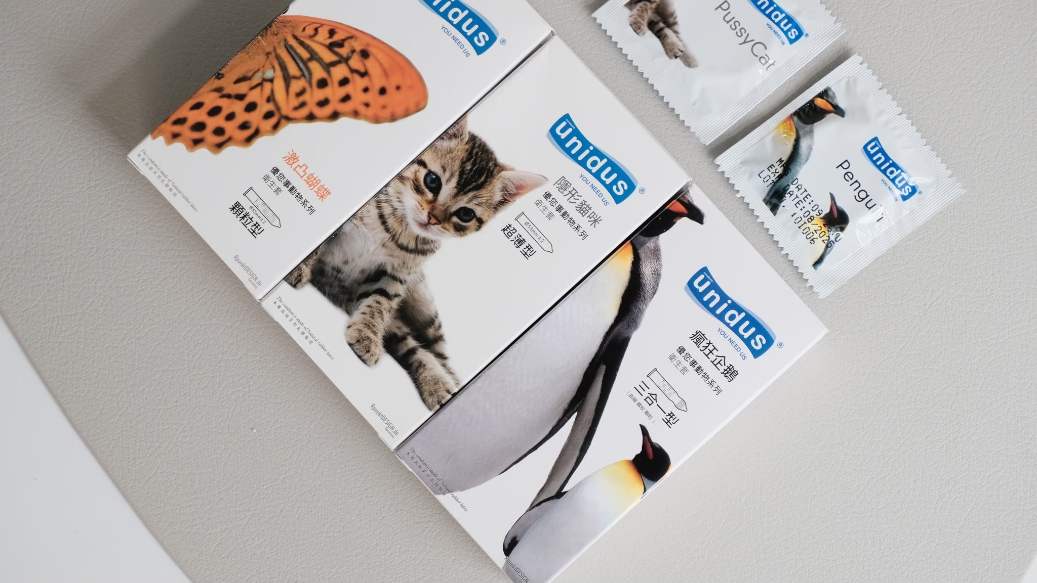 隱形貓咪超薄款/瘋狂企鵝三合一款/99公牛持久款/激凸蝴蝶顆粒款/森林之王平滑款/熱情斑馬螺紋款,可供選擇,小編最喜歡的是超薄貓咪與三合一企鵝,心動不如馬上行動,用過就知道優您事的厲害之處啦~