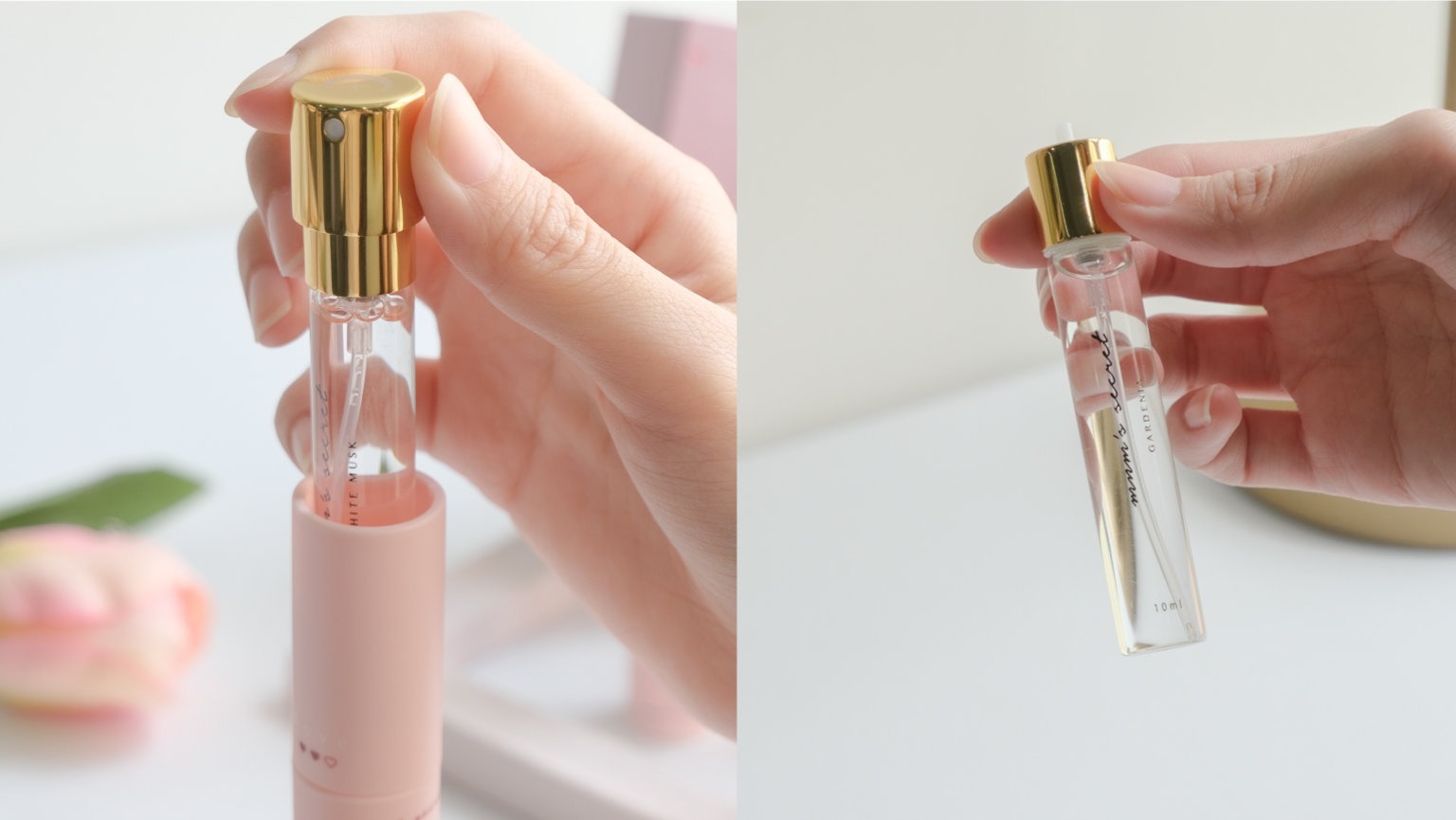 ▲由左至右分別是梔子花、紅玫瑰、白麝香香味